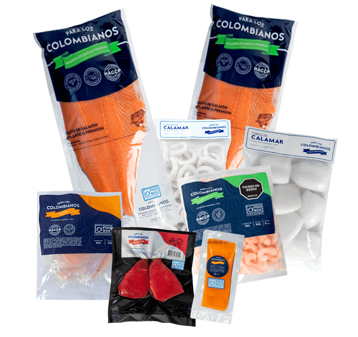 Incluye nuestro portafolio: salmones, camarones y filete de tilapia,